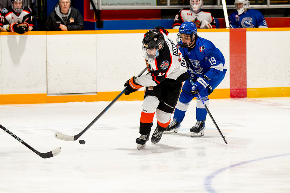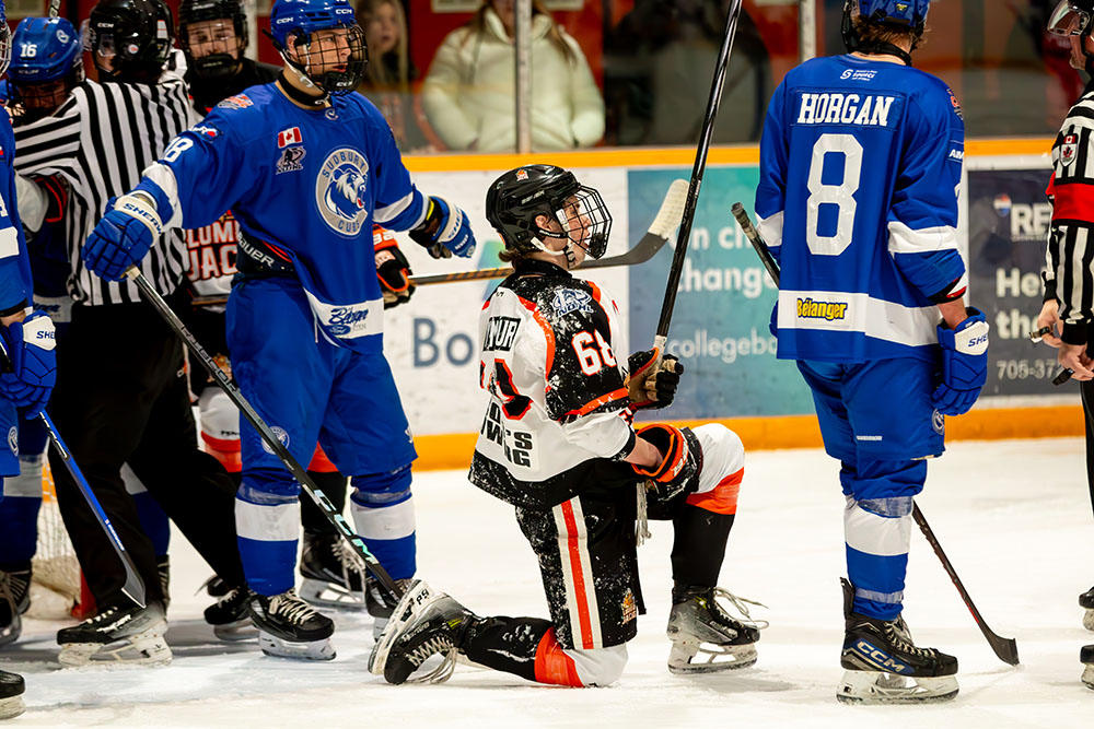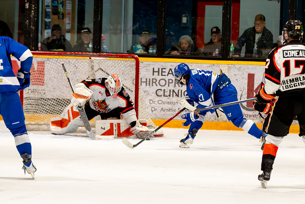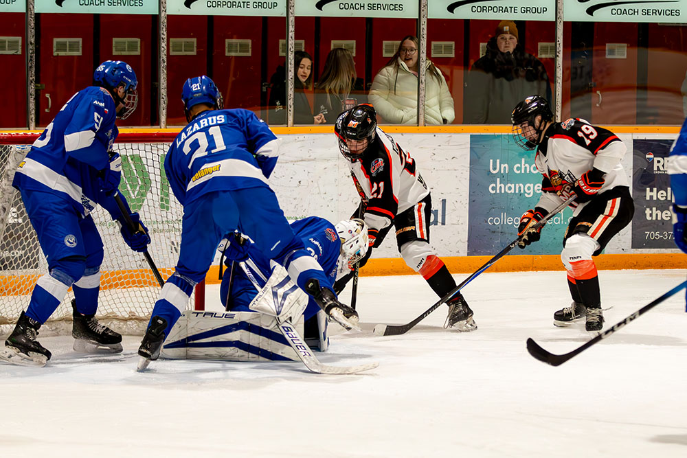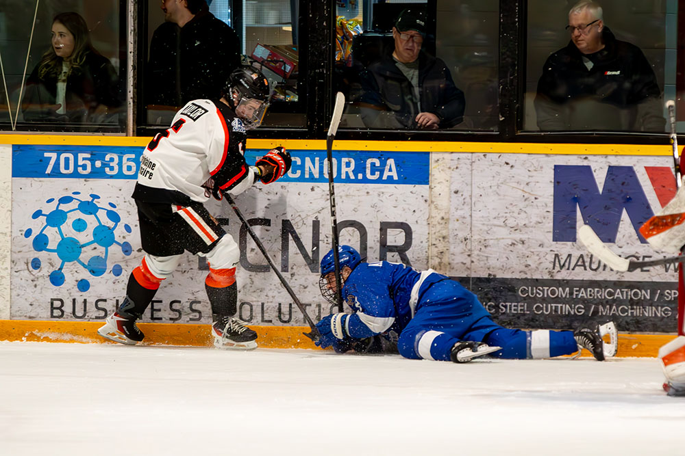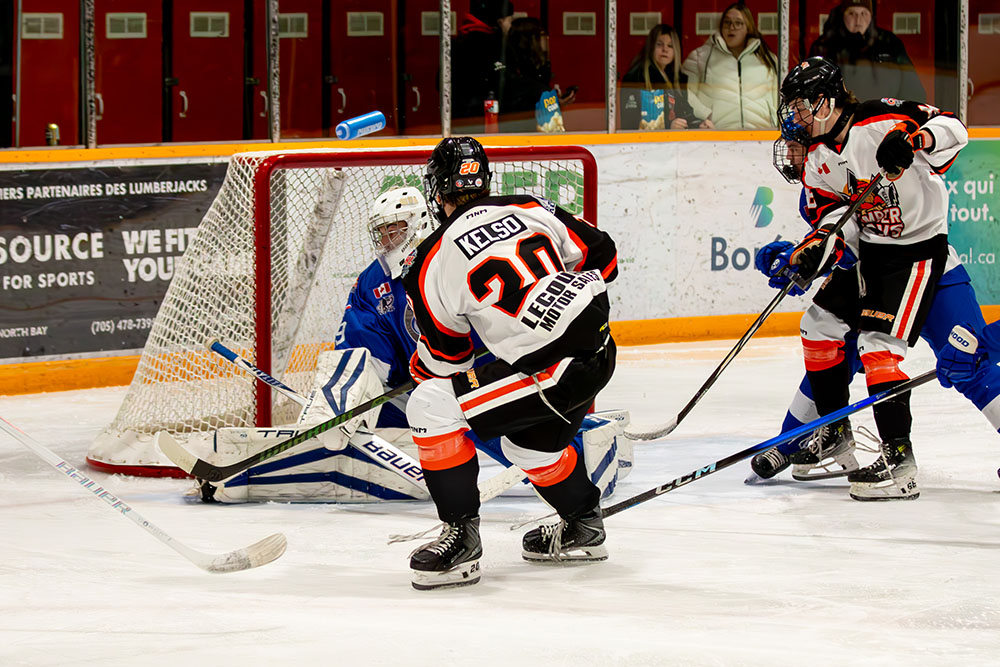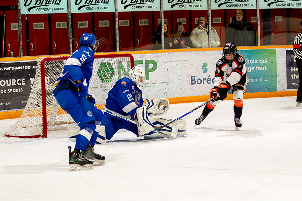 The lone marker in the first period came midway through it when Greater Sudbury’s Owen King clicked on the man advantage by taking a cross-ice feed from Mason Walker and whipping it high over the blocker of Hearst netminder William Stonehouse for his 25th tally of the season.