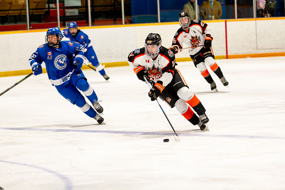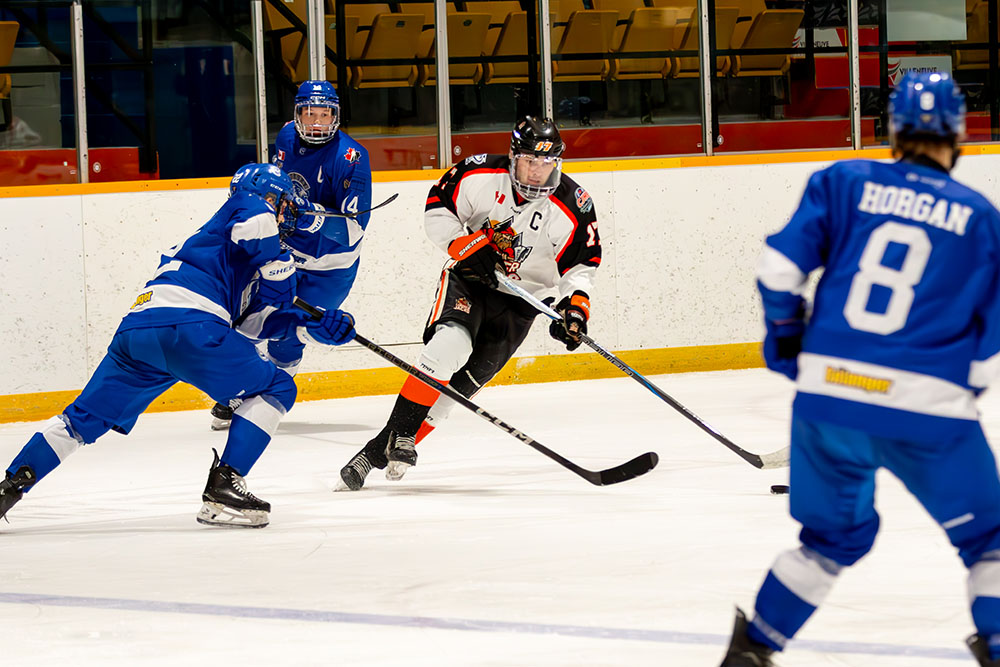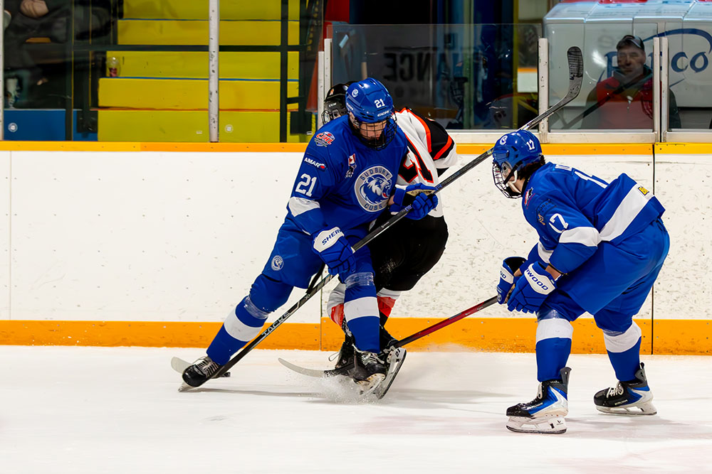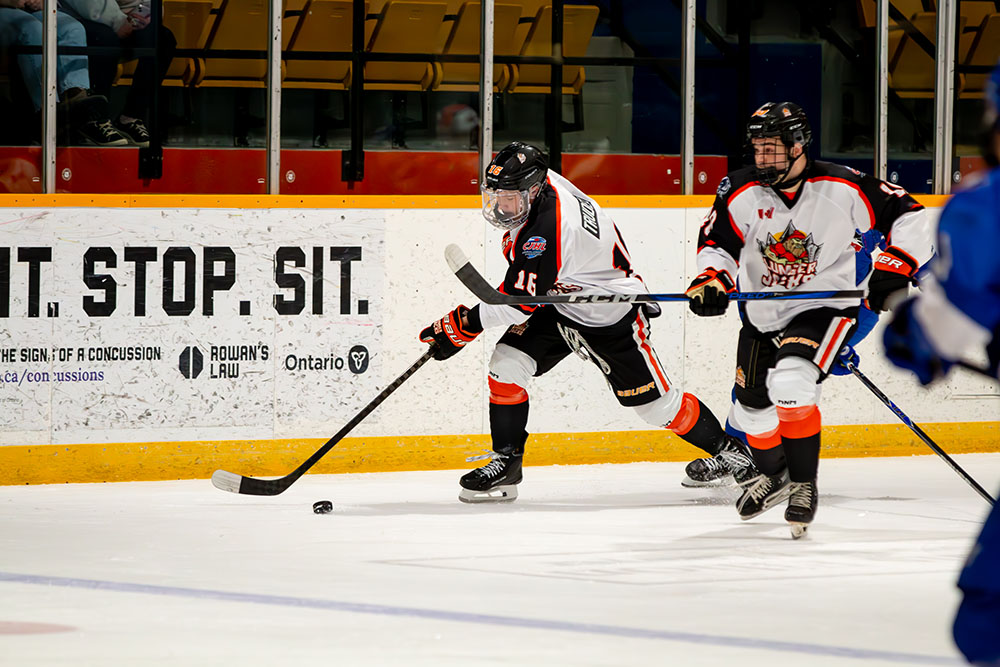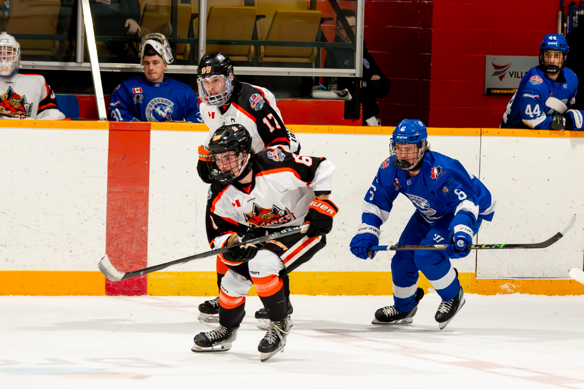 The Lumberjacks drew level 5:43 into the second stanza when a Cubs’ defender fanned on a pass in his own end that allowed Hunter Kelso to whip in the tying tally past goalkeeper Iain Wintle.