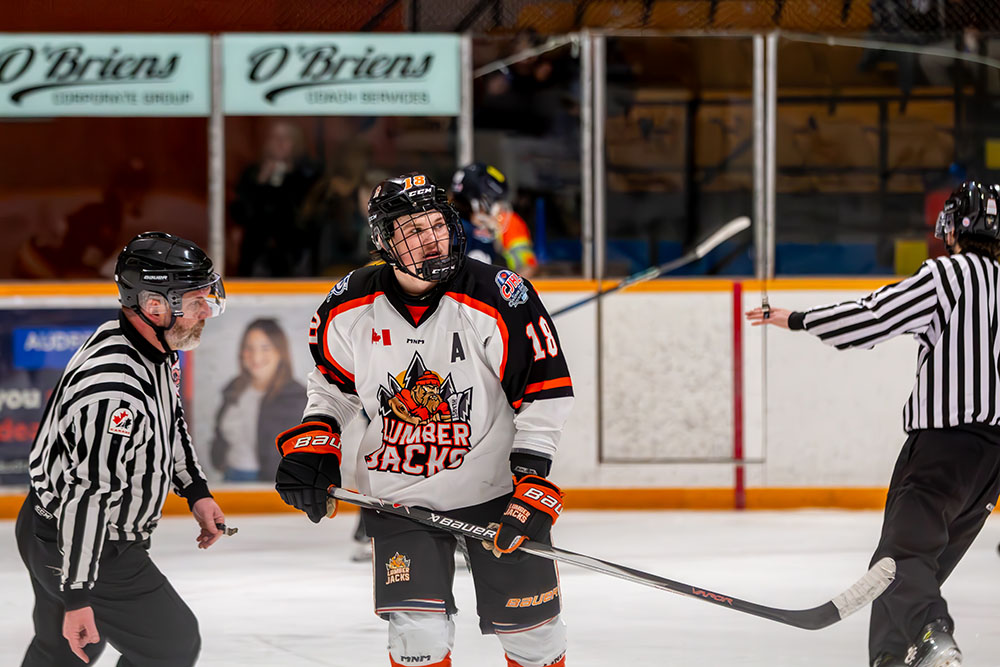 HEARST, Ont. – Cameron Menard’s first goal as member of the Hearst Lumberjacks, coming 32 seconds into overtime, was the difference as his new side withstood an impressive comeback bid by the Kirkland Lake Gold Miners before prevailing 6-5 in a wild Northern Ontario Junior Hockey League affair Sunday at Claude Larose Recreation Centre.
