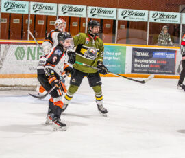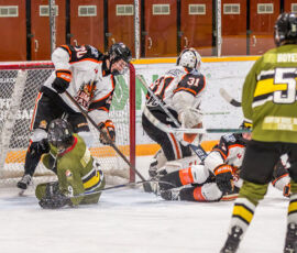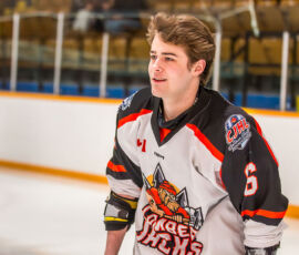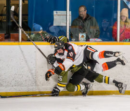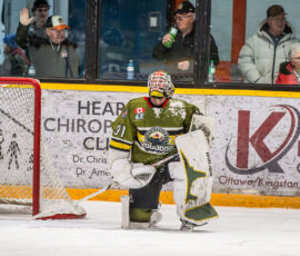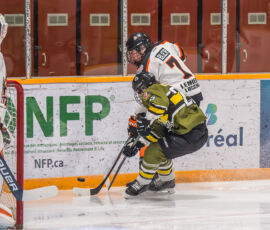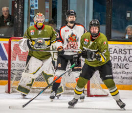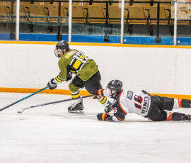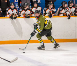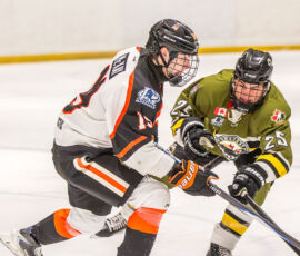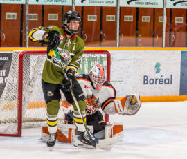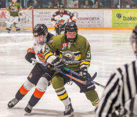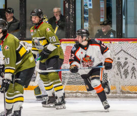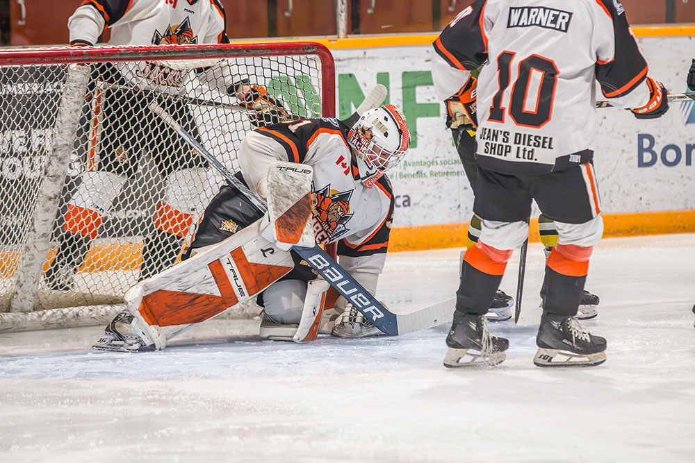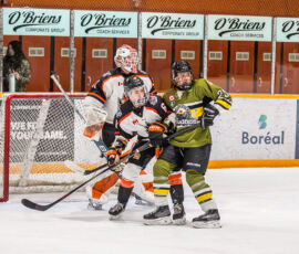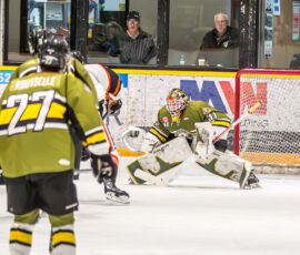 More from Rousselle and Powassan midway through the matchup made it 3-1 as he took another pass from Krats, then made a nifty toe-drag before wiring one over the blocker of the Hearst netminder.