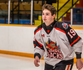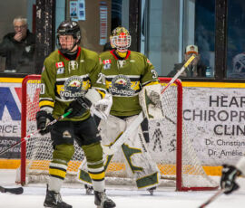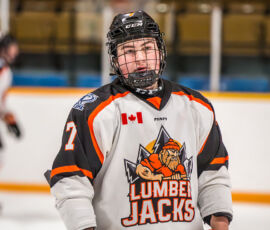 Pulling even at 13:51, the Lumberjacks’ Julien Trudel lobbed one to the target from the left point, that bounced off Voodoos’ goaltender Derrick Champagne, right to Cameron Menard, who promptly pumped in his NOJHL-best 41st tally of the campaign.